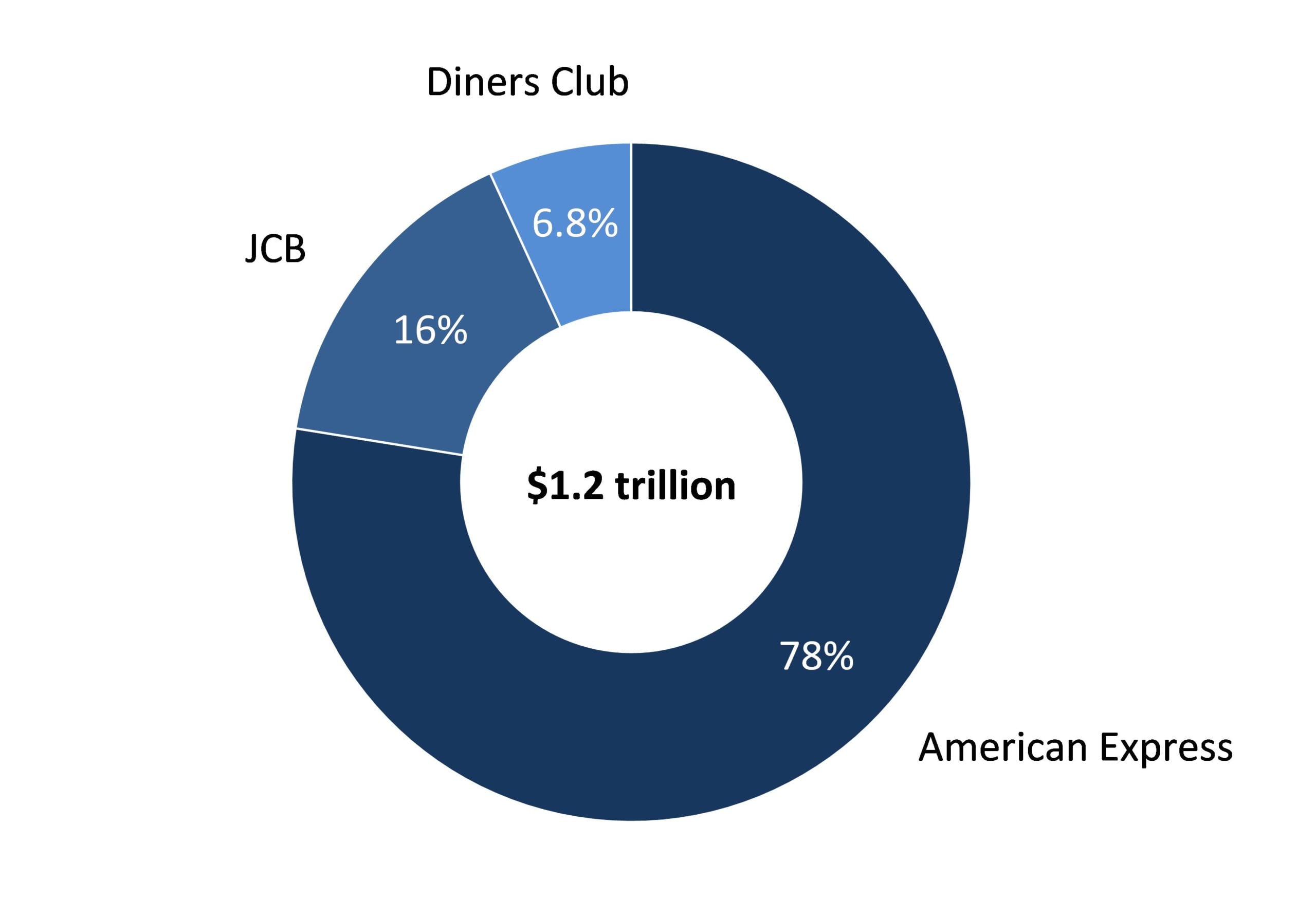 American Express accounted for 78% of global T&E card expenditure in 2014, with most of the remainder being carried out on JCB cards. Whilst shares of spending for all three schemes remained relatively stable in 2014, American Express made modest gains at the expense of Diners Club.