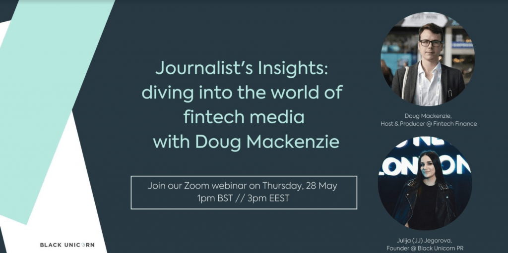 Fintech is one of (if not the most) hottest topics discussed and featured in the media. We are all aware of Monzo, Revolut, Stripe and other companies that are disrupting the finance services industry as we knew it. Fintech is a beat for a large number of journalists, and Fintech focused outlets have emerged. But how do you stand out in the media as a new fintech company in this world of technology, startups, scaleups and others? Join Zoom webinar with Doug Mackenzie, Host & Producer at Fintech Finance, to find out: