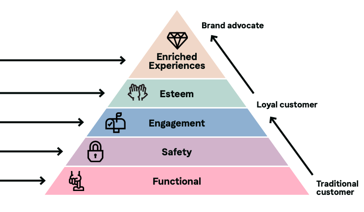- Moving further up the pyramid, the research reveals the importance of engagement, with 39% of consumers saying good customer service would encourage them to shop again with an online retailer. An additional 27% said poor customer service would deter them.