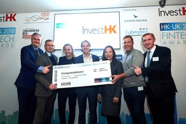 Three other award winners will receive one complimentary booth and ticket for Hong Kong Fintech Week 2018, and receive support from both the Hong Kong and London offices of InvestHK. They are: