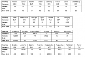 Please find below all 29 countries with their old and new limits: