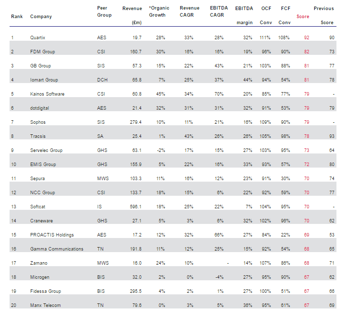 - Quartix, FDM Group and GB Group are the top three ranked companies.