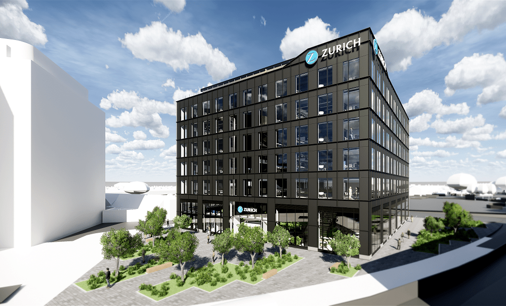 Reflecting Zurich’s focus on sustainability, the new build is looking to achieve a BREEAM[1] rating of ‘Excellent’ on completion as well as minimising waste during construction and through the building’s life cycle. It will be located on a long-vacant, brown field site in the town centre with work due to be completed in 2022. The building will provide over 100,000 sq ft of office space over six floors with a terrace and function space at roof level.
